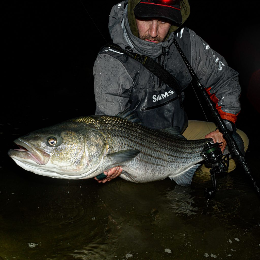 In the past, we were typically greeted with waves of 16- to 28-inch fish, which were a blast to target on light tackle, but gone are the days of bringing out your light, early-season schoolie setup. I’ve found myself under-gunned a few times over the past couple of years, so now I bust out the 9-foot surf stick right out of the gate. I usually pursue the first waves of bass in our local estuaries, where they are chasing schools of river herring, so 5- to 6-inch paddletails or Gravity Tackle eels are my go-to presentations in the spring. It should come as no surprise that live eels will also result in some tank-size bass. Topwaters can also be effective in the early morning or late evening, but I find these spring fish can be a little more finicky and tougher to fool in the quiet backwaters.