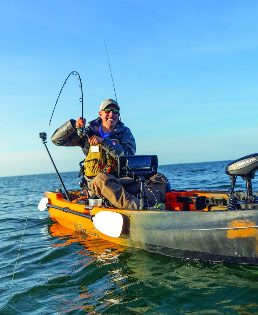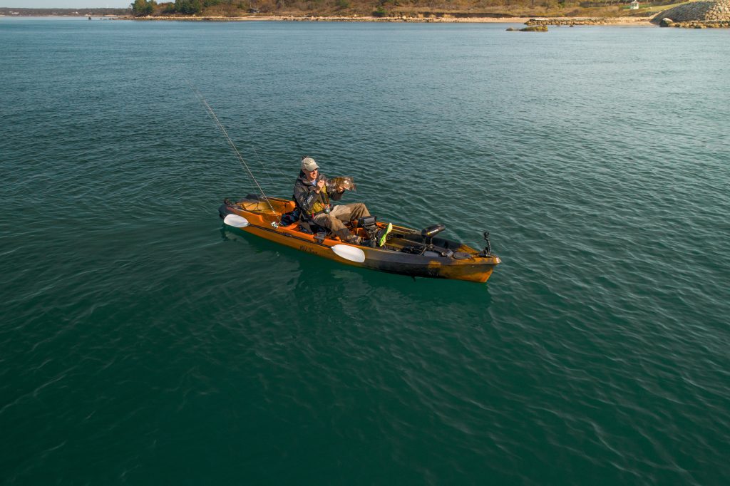 A clear trend has surfaced in kayak angling that favors motorization. For example, the Old Town Autopilot employs a Minn Kota trolling motor with Spot-Lock technology. Trolling motors are helpful when covering long distances in tidal water. Having a motor when chasing stripers in Raritan Bay sure beats paddling, but the tradeoff is the added weight of the motor and battery, which can change the kayak’s handling characteristics or exceed the usable weight capacity. Consider Minn Kota, Newport Vessels, and Torqueedo for kayak-specific electric trolling motors. Kayak models across many brands are now being specifically designed to accept bow- and stern-mounted motors.