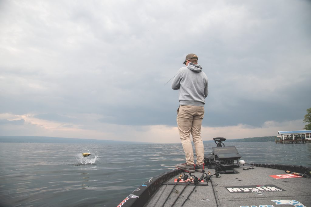 It’s 6 a.m. on Cayuga Lake. Anglers on the Bassmaster Elite trail are nursing Thermoses of hot coffee to shake off the pre-sunrise chill as Garrick Dixon sits quietly among the fleet with his camera in hand. He skipped the cup of Joe and instead drinks in the pre-takeoff sights, smells, and sounds through his lens. Spectators speak in hushed tones as the best bass fishermen in the country tinker with jigs and jerkbaits, double-check their knots, and map out their spots for Day 1 of the tournament. In 15 minutes, their poker faces will disappear as a chorus of engines roar to life and competitors peel away from Frontenac Park at Union Springs. Until then, Dixon continues to shoot in peace on the longest Finger Lake’s dimly lit eastern shore. This is his element.