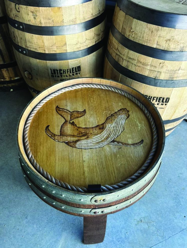 His preferred woods, curly and spalted maple, cherrywood, and black walnut, come from local suppliers like Parkerville Wood Products and Summit Atelier. He also reliably receives discarded bourbon and wine barrels supplied to him by Connecticut’s Litchfield Distillery and Chamard Vineyards. The barrels allow him to personalize a locally-sourced, recycled, high-quality canvas for his customers which, when left intact, only furthers the coastal aura of his completed work.
