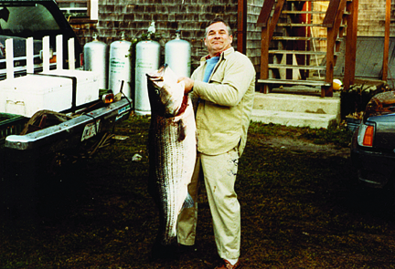 Soon after I arrived I met up with my good friend and fishing partner, Jack Linton, a master fisherman if ever there was one. I had high expectations for this outing because on the October trip I had finished my stay with a memorable doubleheader at Anderson’s, a spot on the island’s south side, landing an 18-pound bass on my needlefish plug and a 45-pounder on a black teaser. I share this information in passing only because fishermen became accustomed to catching trophy fish on a regular basis throughout the 1980s at that spot, but it was a well-kept secret in the early part of that decade. It was not the only spot though; during that 10-year period, Southwest Point and other island spots hosted blitzes of fish in the 30- and 40-pound range along with many 50s, an occasional 60-pound fish and even one 70-pounder thrown in for good measure. In our fishing club’s November newsletter from 1984 it says: “All of us connected with fish in the 20s, 30s and 40s, which are too numerous to recall. In fact, one night at Black Rock, Chuck Patnaude and myself dropped more big bass than I’ve caught in my last seven years of bass fishing in Gansett. . . . it was that type of fall on the island.” The article went on to say that five club members joined the “nifty fifties” club that year, with Jack Linton taking the biggest bass, which weighed 59½ pounds. Many of the regulars on the island, like Charlie Dodge, Steve Campo, Tommy Vanderkieft and others, rarely talked to the press about their incredible catches. I know of trophy fish landed that never made it to print; in fact, I know of many.