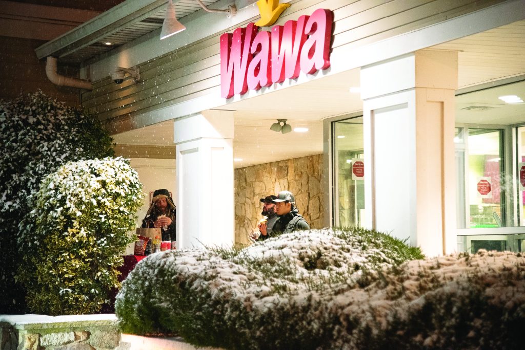 New Englanders and New Yorkers don’t know what they’re missing when it comes to pre-trip convenience store stops. Rob Taylor, Anthony DeiCicchi, and Mike Kim fuel up on Wawa Sizzlis before heading out onto the snowy ocean.