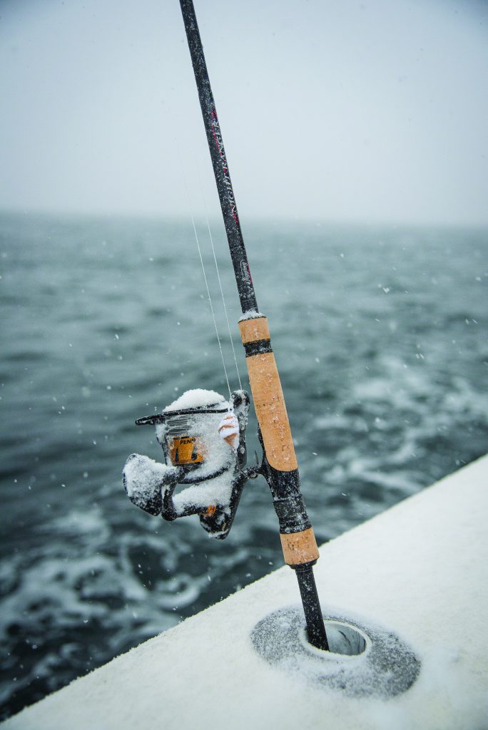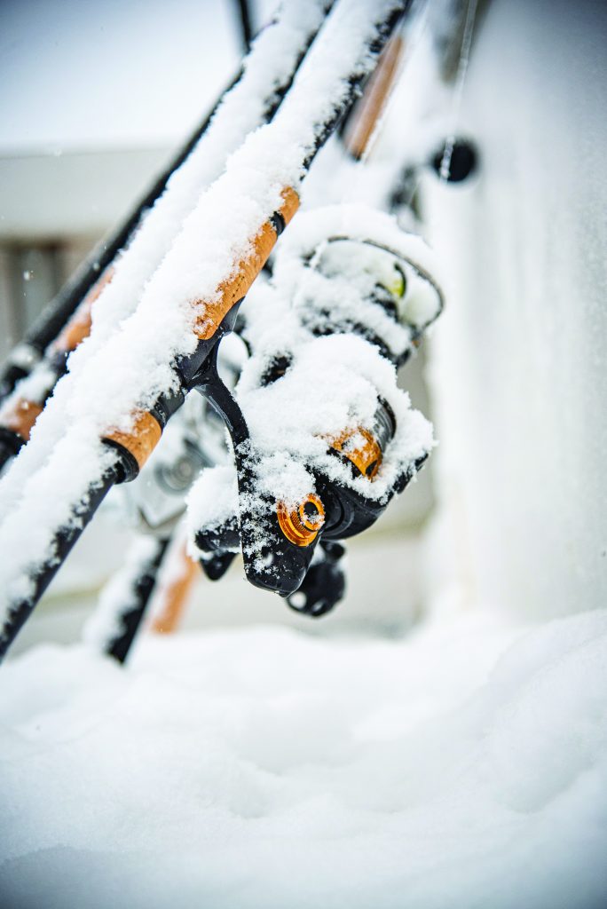 Snowfall buried the rods and reels on the ride to Cape May Reef.