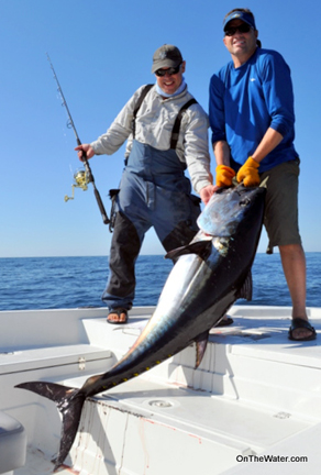 Chris Megan and Kevin Blinkoff from OTW as well as Craig Cantelmo from Van Staal were kind enough to keep me up to the minute on their tuna trip east of Chatham, Cape Cod yesterday while I was at the OTW office. The trio found breaking tuna off Chatham in 70-90 feet of water. They had a number of shots and connected with a 58-inch keeper on a Slug-Go worked across the surface. Other boats also did well further east of Chatham this week. Captain Eric Stewart from the Hook Up in Orleans came tight on four tuna on Tuesday trolling splash bars. Black and Chameleon were the colors that got bit.