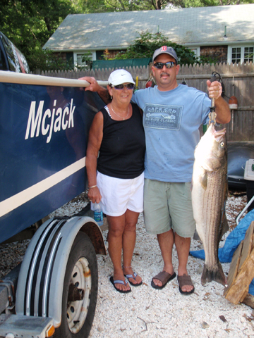 Well….if anyone was out for the tuna blitz at billingsgate shoal on Thursday your eyes were as wide as mine but we did not hook up. We also threw soft plastics and plenty of top lures but still nothing…fish finder blasting, fish in sight… but no bite. Very frustrating. Friday we started out at the brewster flats then headed out to the shoal where there were more than 40 boats and I thought they all could not be wrong. Well after the choppy ride out we were greeted by three and a half hours of tube and worming, no one else caught a darn thing but then the left side went off……a 24″ monster striper, only a monster since that was the only fish I saw taken in two days. I showed my son how to rejuvinate the tired fish after he reeled him in and got ready for the next one which never came.Yes we had some excitement but more family fun….hope they come back with me again….yes we did some coldwater swimming in Brewster off the boat which kept the youngest of the family happy. Thats what matters at the end of the day. Thanks for listening….Jay
