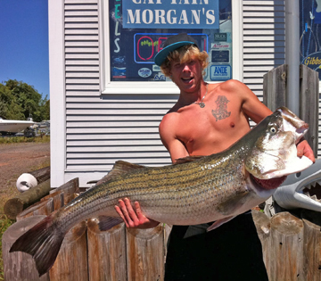Live eels after dark continue to account for nice stripers according to Robin at Quonny Bait and Tackle. Two of her customers, Ryan Laplant and Zach Barberich, went breachway hopping in South County on Tuesday night and scored some keeper-sized bass on the outgoing tide. Ron at Breachway Bait and Tackle has been catching nice fish using eels as well, but he’s been focusing on the reef just off Charlestown Breachway during morning tides. With overcast skies and a slight heave on Tuesday, his crew landed bass up to 30 pounds and bluefish up to 10 pounds. They went back on Wednesday morning with calm seas and sunny skies and did horrible.