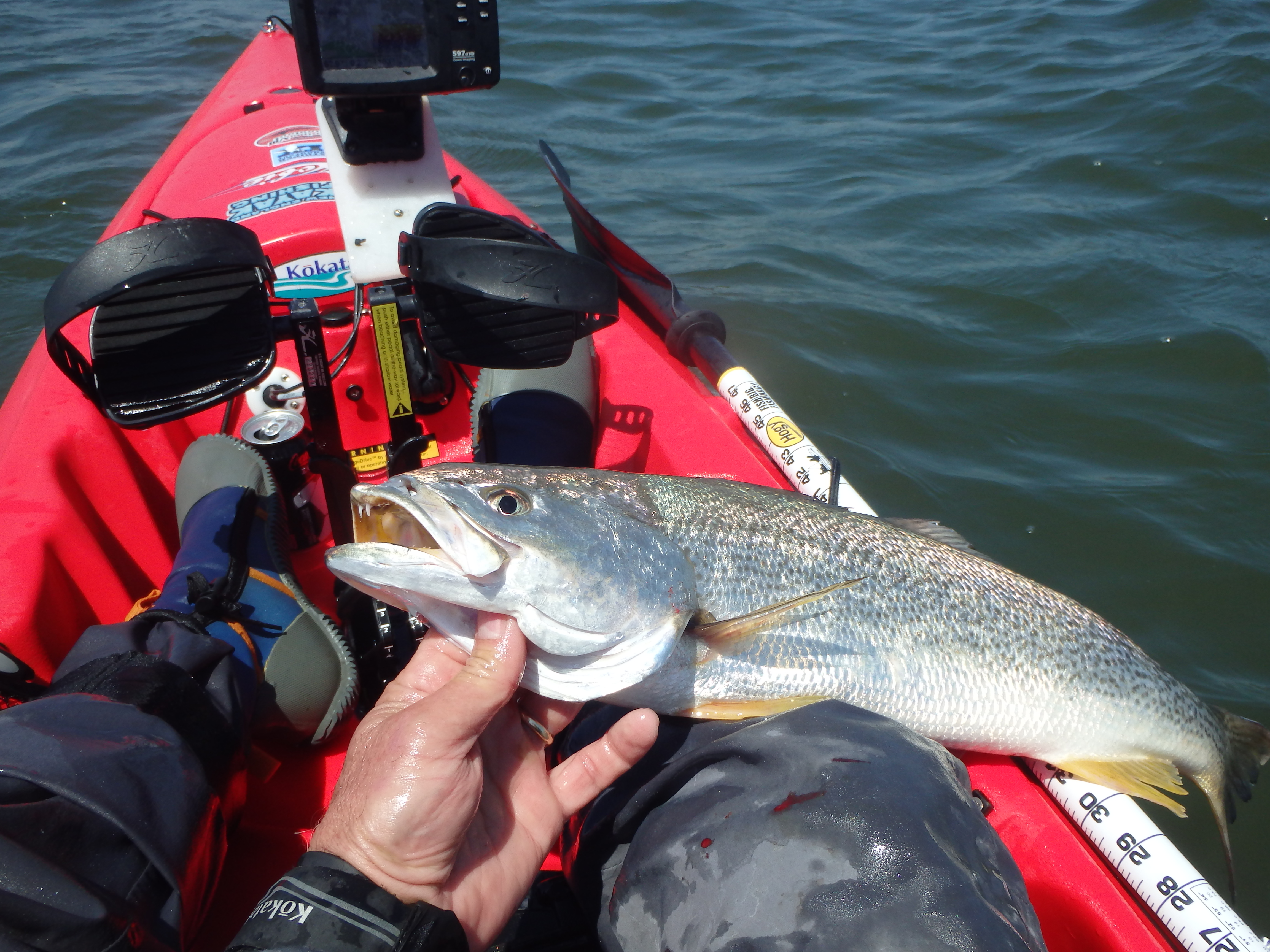 Surfcaster Steve McKenna of Quaker Lane Tackle is hoping that the fishing picks up a bit as the storm approaches. The Jamestown surf has been consistent for small stripers at night, but with all the bait around, he thinks the fishing could improve with a little wind, wave and tide action. Steve also reported that OTW Insider Capt. Thom Pelletier was fluke fishing this week when a bonito grabbed his fishing partner’s fluke rig.