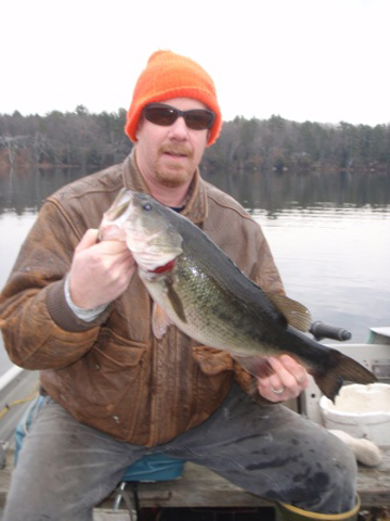 Multi-species savant and Monahan Marine tackle manager Russ Eastman invited me last Friday to his favorite brown trout water body, and we did tally a lunker of nearly 6-pounds – but it was the wrong species! The ride out was bit unnerving since pond after pond had big expanses covered with skim ice. But the deep, spring-fed South Pond is one of the last to lock-up and it was ice free. Before we even launched at the brand new boat ramp on South Pond in East Brookfield, an eagle flew overhead. Seeing America’s symbol in the flesh always brings me good luck.