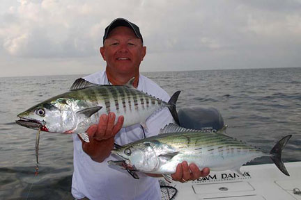 The speedy bonito also paid a visit to eastern Long Island Sound over the past week. Captain Blaine of Anderson Guide Services found good numbers of them last Friday along Fisher’s Island. Feeding on peanut bunker and squid, Blaine and a co-worker matched the hatch with Deadly Dicks, Sebile Magic Swimmers and Shimano Waxwings. They also noticed much smaller splashes, downsized a bit and caught a rarer Sound visitor, frigate mackerel. This was just the tip of the iceberg and with the powder keg of bait in the Sound, we could see a phenomenal bonito and false albacore season in the coming weeks.