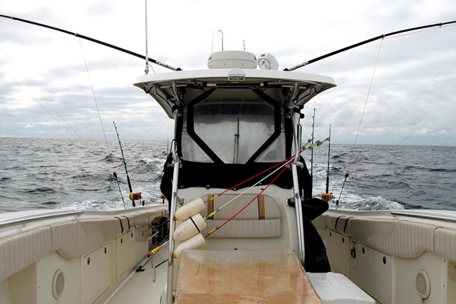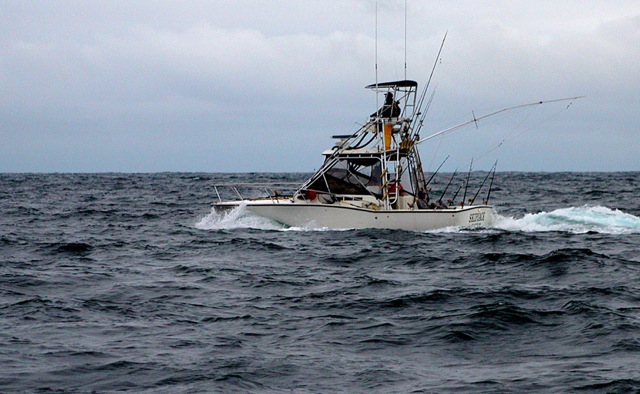 I was fishing with OTW contributing writer Jon Pilcher aboard the TunanuT, a 33-foot HydraSport center console powered by twin Yamaha 250’s. She’s a fast, stable and dry ride. We cruised at just over 30 knots and got there quick; arriving at the edge of Veatch Canyon in around 4 hours.