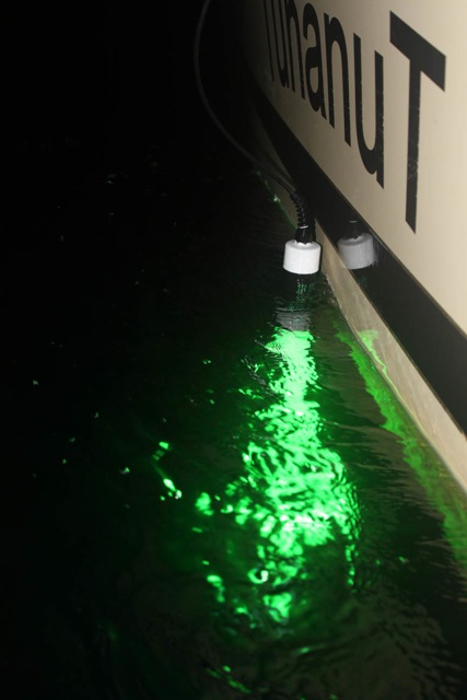 But Veatch Canyon didn’t provide us with much life that night. All three boats reported an unusually low amount of bait. We saw a few squid, and were paid a visit by this five-inch mahi, but all three boats would end up fishless that night.