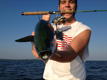 False albacore action exploded this week. Boats made double-digit catches as these miniature tuna invaded the south side of the Cape. The bluefish bite was outstanding this week, and stripers are schooling up and beginning to feed heavily. With these three species feeding in big numbers, it’s safe to say that the fall run of 2012 is underway.