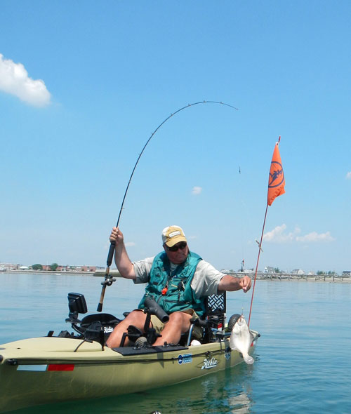 I finally saw the light; thankfully not in the mortal sense, but the light as in lightweight and convenient fishing courtesy of a kayak. After sampling a demo Hobie Revo 13 MirageDrive that I borrowed from Mike at Monahan’s Marine in Weymouth, I finally committed. You cannot walk into Monahan’s and not wind up in a good mood; anyplace where you are greeted by a tail-wagging lab and dachshund is a place to spend some time, in my opinion. What helped with my kayak indoctrination was a little mentoring from local Hobie Rep Chris Howie from Rockland who showed me not only the fundamentals but how to catch flounder from a kayak as well. After the third nice flounder, I was sold on the boat and the blackbacks in Hull! Unquestionably the flounder stock in Boston Harbor consists of smaller fish than in past years, a condition that is likely linked to regulators ceding to the commercial industry, whose trip limits have been doubled. If you are striking out in established spots check out the 4 Can flats off Deer Island, Graves Island and Green Island. Or move up north a bit and target Bass Point in Nahant or Lynn Harbor.
