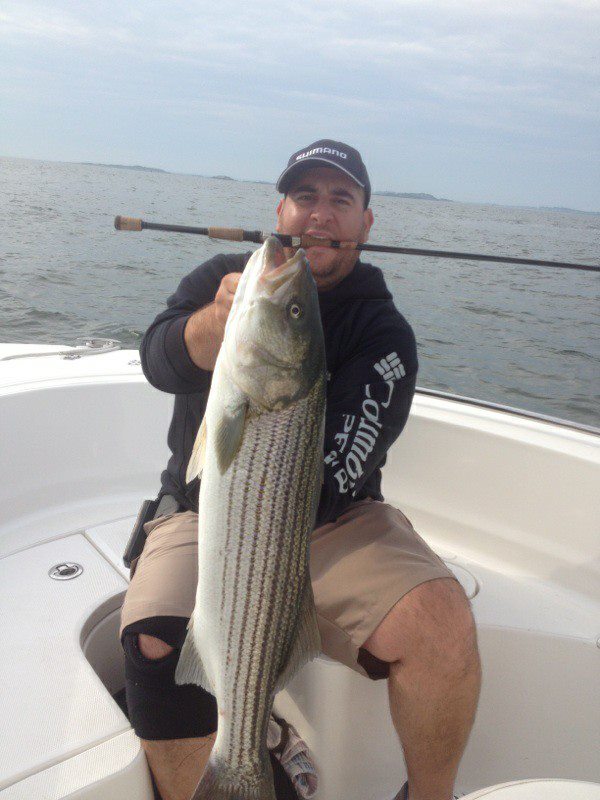 Bass and sometimes blues have been busting bait in Hull outside of The Gut and by Rainsford Island. The other side of Boston Harbor has been best by the North and South Channels out through Broad Sound. Most fish taken have been teen-sized fish, which aren’t half bad, but there are cows among the kids. The bigger bass are still being bested by those going through the effort of acquiring mackerel or pogies and live-lining them by inshore structure. The former can be found in sporadic numbers between the BG Buoy and the B Buoy, while pogies are slowly permeating Wollston Beach. Try tossing livies under a balloon by Strawberry Ledge, Point Allerton or Toddy Rocks off Hull. Other options are by Faun Bar, the Five Sisters and Kelly’s Rocks. Dave Panarello saw a few of these fish they were 35-pound plus brutes!