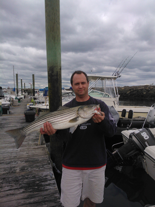 It’s not surprising that his sons, Joe Holey Jr. (who pens the fishing report for the Lynn Item) and Mike share the obsession. On Wednesday, after a dismal morning, the trio simply retooled and decided to hit the same spot that evening – and found insatiable stripers that could not pass up their tinker mackerel in a trough next to only a couple of feet of water! Big fish honors (for the season so far as well) went to Joe Sr. for a portly 32-pounder! This was made all the sweeter since Dad was given the ultimate hall pass from Mrs. Holey as they were celebrating their 36th wedding anniversary! Joe Sr. thus far had a poor season since he was playing “guide” to others and content to put them into fish. If that doesn’t make you believe in karma then I don’t know what will!