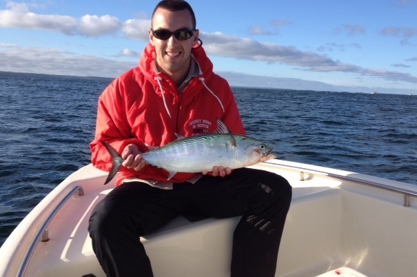 12 boats out there no one was catching fish! some guy showed us a decent blue and said he saw some guy catch a small keeper! we only caught one mack out there and saw a whale!