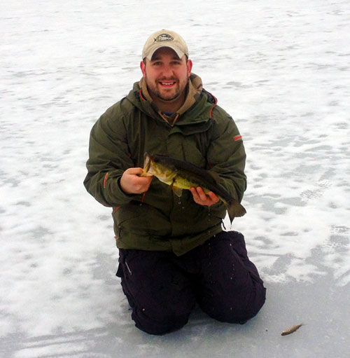 Dan at The Hook Up in Orleans hit the ice over the weekend, starting with Flax Pond in Nickerson State Park, where he iced a 4- and a 3-pound smallmouth, along with a few perch. The following day, Dan hit the ice on Herring Pond where big rainbows, 18- to 19-inchers were the catch of the day. Between ‘bows, Dan and Captain Rich Haight put some pickerel and bass on the ice. According to Dan, the ice at Flax was 8 inch, while the ice on Herring pond was between 4 and 5 inches.
