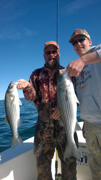 After a few unsuccessful drifts I climbed up to the top help of the Pesky Pole and glassed the area. On the flat east of the harbor entrance I saw some birds working the surface to the east about a mile plus away. A quick signal to pull in the lines and we moved to the working birds. We pulled up in about 5’ of water and quickly found breaking fish. The water was full of small sand eels. Tossing soft plastics and thin metal lures produced many fish up to 34”. The majority were the expected schoolies that frequent these flats, but larger fish were there to add to the fun. Once the tide was up and started to turn out, the bite increased with many doubles and a few triples. We fished the rest of the dropping tide and even caught fish in 2’ of water before the flats became dry.