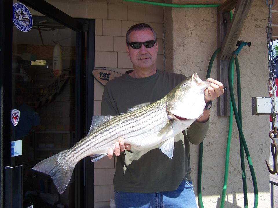 Mark at The Bait Shop said the fishing was excellent early in the week, but died down on Thursday. Boat fishermen caught stripers to 43 pounds. The big stripers are hanging in 40 to 60 feet of water, and live bunker or trolling with bunker spoons has been the ticket to hooking up.
