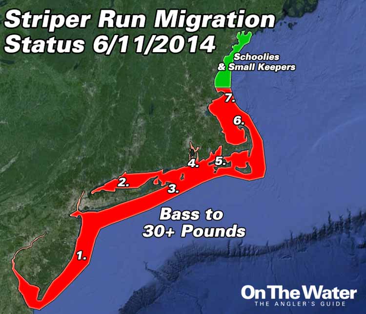 1) Big stripers continue to shadow the bunker schools off Ocean and Monmouth counties.