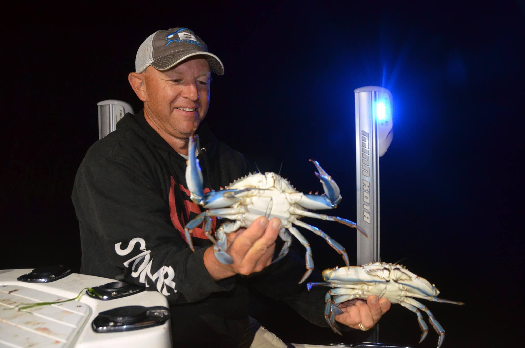 Crabbing – The crabs are getting bigger and more plentiful. Right now is prime time to go crabbing. Good reports have come from the most harbors, Black Hall River, DEEP dock Old Lyme and the Lieutenant River. Coves lower on the CT River have been giving up some big crabs and quite a few of them too. You can find some crabs during the day but the more productive crabbers have gone out after dark. Moving water seems to be best when crabbing, particularly the outgoing tide. Bring your headlamp, waders and a net. I promise you that all the effort involved in catching and cooking these critters will be worth it at dinner time. Pictured is Blaine Anderson with a pair of excellent blue crabs.