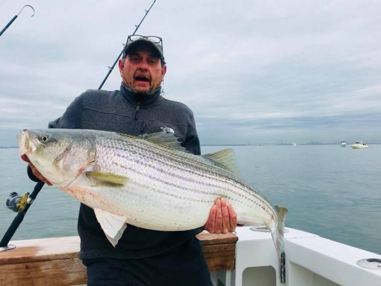 Capt. Pete Sykes on Parker Pete’s Sportfishing, also out of Belmar, began his spring campaign for stripers this week. His first trip was on Thursday and it wasn’t long before the first bass came aboard.