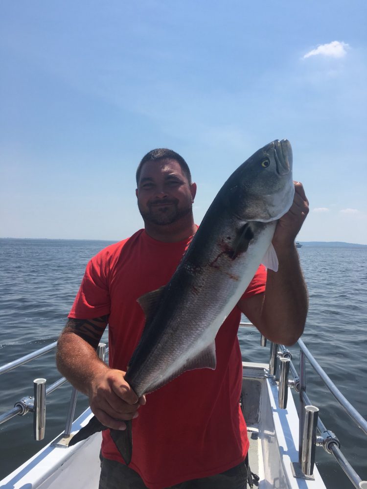 Capt. Falcone reported very good bluefishing over the last several days. Tuesday’s trip started out with fish from 5 to 10 pounds and ended up with monsters up to 18.