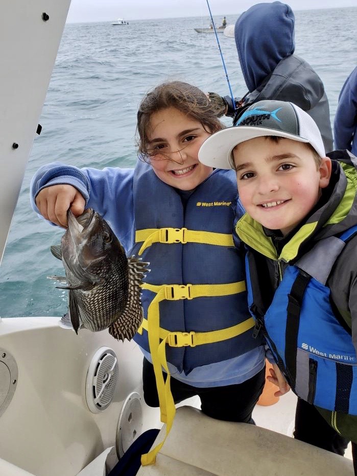 The tog are most likely headed inside the bays to spawn. Evan at Eastman’s heard of some jetty fishermen doing well pitching crab-baited rigs from the rocks. You may find some keepers fishing the rocks, but the female tog will be heavy with eggs, and while not required, it would be wise to release them to spawn. The males, easily identified by their protruding white chins are fair game. The tog limit drops from three fish to one on June 1.