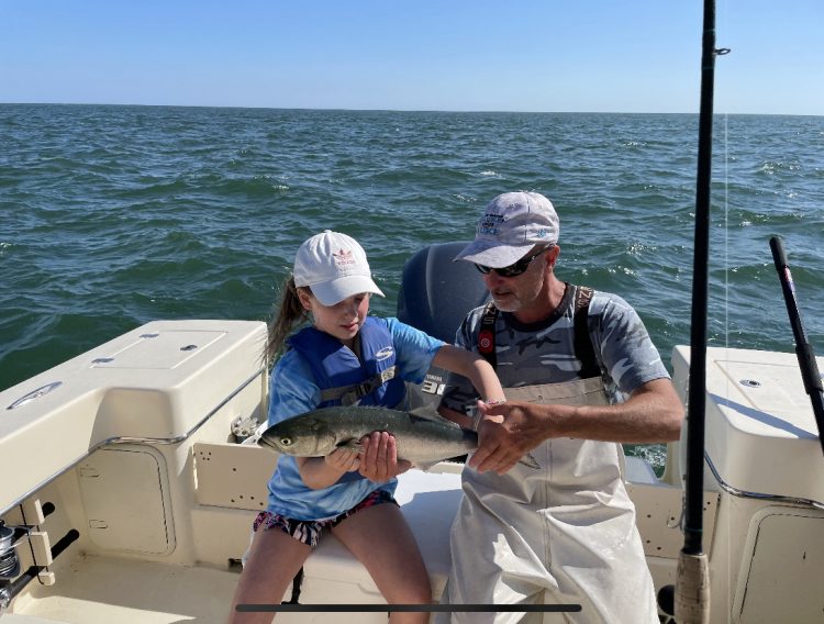 Captain Kurt Freund of Fishsticks Charters continues to find good bluefish action with light tackle around Martha’s Vineyard and Noman’s Island. He also boated the first albie of the season. In fact, Kurt said it was a week of firsts for his charters, with Josephine Gilmartin catching her first bluefish and Mark McDougall landing his first albie and first bluefish.