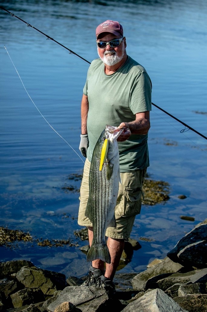 East End Eddy Doherty informs us that the Cape Cod Canal’s strong current is still bringing in fish: “There are still some striped bass in the Canal, but you really have to work for them. Ian, who was helping fishermen at Red Top Sporting Goods in Buzzards Bay, reported an early morning east tide bite of bluefish, schoolies, and slots that were riding the current into Cape Cod Bay. Green mackerel and bunker-colored soft plastic jigs with paddle tails are scoring, even sometimes when rising in the current to, in effect, become a swimmer. Don “Hawkeye” Willis got into some top water action catching two slots on his 3-ounce Guppy JoBo, Jr. yellow pencil just before the morning slack tide turned west.”