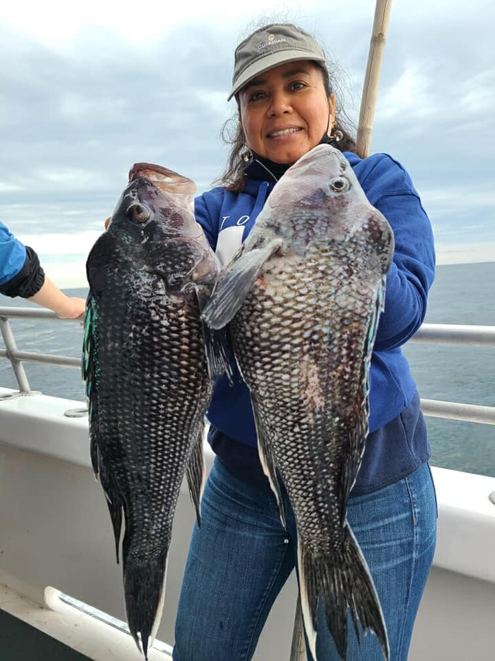 Captree’s Laura Lee reports: “Most fisheries were productive this week, with hundreds of sea bass and porgies being caught on multiple trips. The sea bass fishing outperformed the scup fishing regularly. Many fluke came over the rail, along with a variety of other species. Of note were mackerel, a bonito, some cod, and a bunch of bluefish. There were surprisingly few stripers caught this week, despite the attempts at targeting them.”
