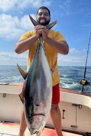 Yellowfin tuna keep moving east with reports of fish caught as close as 10 miles. Most folks are jigging, but the tuna are also being taken on the troll and with poppers. There are bluefin in the mix as well. More bait has moved onto the beaches fueling the fluke and bluefish bites and small bass continue to hit sand crabs and small plugs in the surf. The wrecks and reefs are giving up more and bigger fluke with anglers filling out their catches with sea bass, ling and triggerfish.