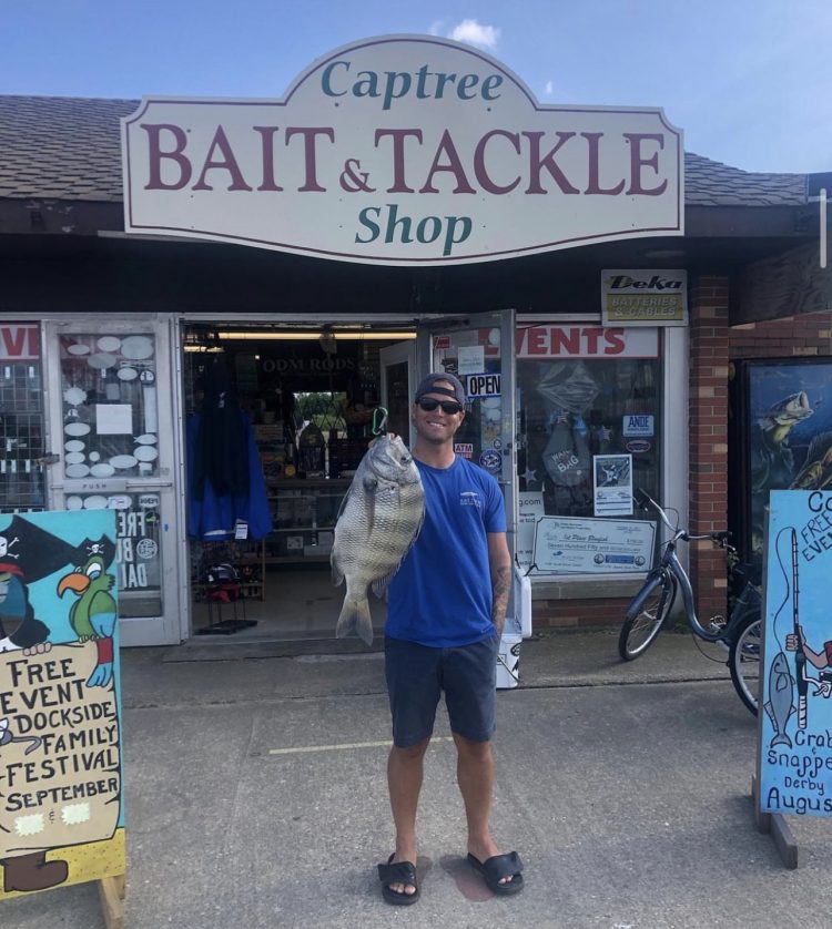 “A good amount of large fluke have been coming to the dock this week. Joey the Grandson picked himself a nice 8 pounder off the reef on the 20th. The next day, Jay brouhght in a 7.5 pounder. Then yesterday, Fred dropped down a Gulp rig and ended up reeling up an 11.44 pound doormat while fishing aboard the Captree Fishfinder. Great fish guys! Last but not least was a local sheepshead caught by Sean, which measured 8.64 pounds at the shop!”