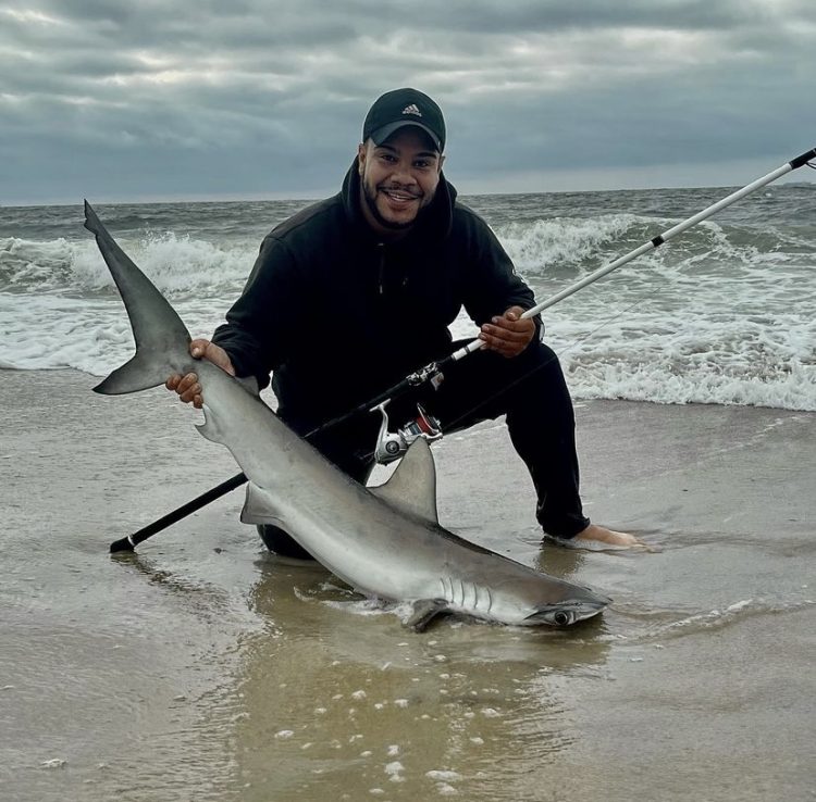 Earlier this week on the south shore, surf angler Freddie “Frankiifish” Torres caught a surprise while fishing chunked bait in the surf. He reeled in a young hammerhead shark.