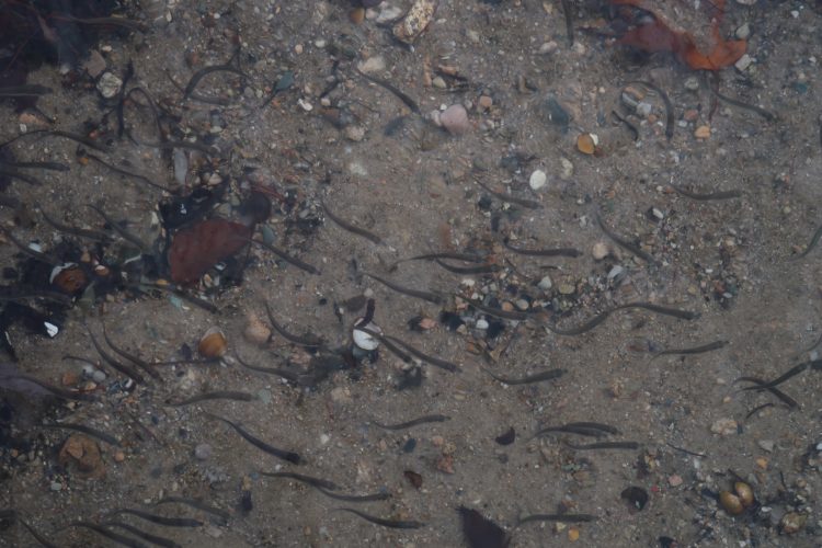 I’m glad you said that! I also thought they might be juvenile herring, but I couldn’t quite tell. In the sun, the school took on a blueish color and they were schooling near a creek entrance… Might be alewives after all!