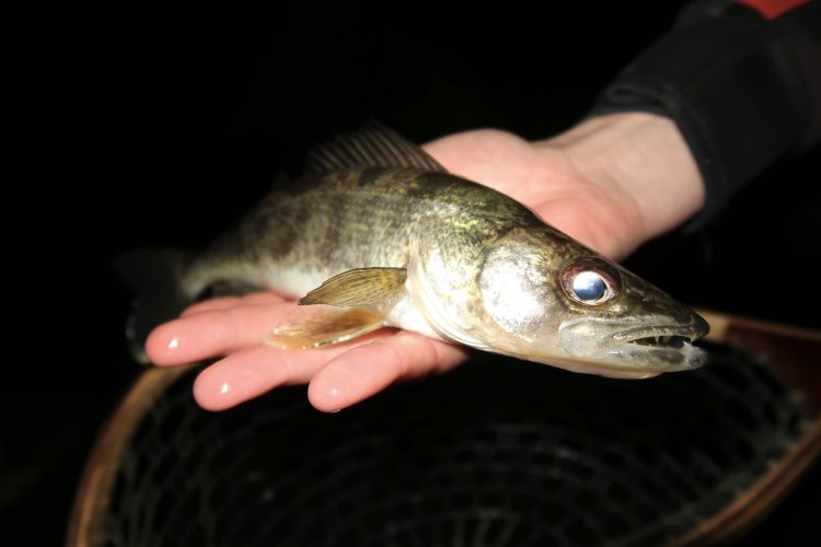 Over the past few weeks, some anglers have taken advantage of mild temperatures and quiet, still evenings to chase walleye in the two largest freshwater bodies on Long Island: Lake Ronkonkoma and Fort Pond. While it is a low percentage game most of the time, all it takes is one good walleye, or a surprise bass or crappie to make the night worth it. Just ask Tim Regan (@southforksalt). Tim is the Eastern Long Island Fishing Report author during the high season, a regular OTW Magazine contributor, and he fishes hard 12 months of the year for whatever bites. Recently, Tim’s efforts have been directed toward white perch and walleye, and he’s been handsomely rewarded.