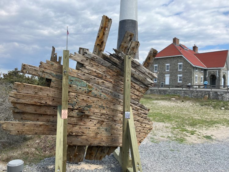 My primary reason for being at Robert Moses however was to volunteer for the Fire Island Lighthouse Preservation Society, to help them prepare the museum for the Summer season. Built in 1857, the Lighthouse still stands today thanks to the support of volunteers and donors. The lighthouse itself experienced some cosmetic damage recently and has been closed for repairs. They’ve had fewer visitors as a result. But while you can’t climb the lighthouse itself, there are still plenty of fascinating exhibits to take in and the interpreters do a fantastic job of telling these stories to visitors. During my visit this week, I got to take a look at a piece of what is believed to be a bow-section of the wreck of the SS Savannah – the first steamboat to ever cross the Atlantic – which washed up on the beach at Robert Moses and is now on display at the museum.
