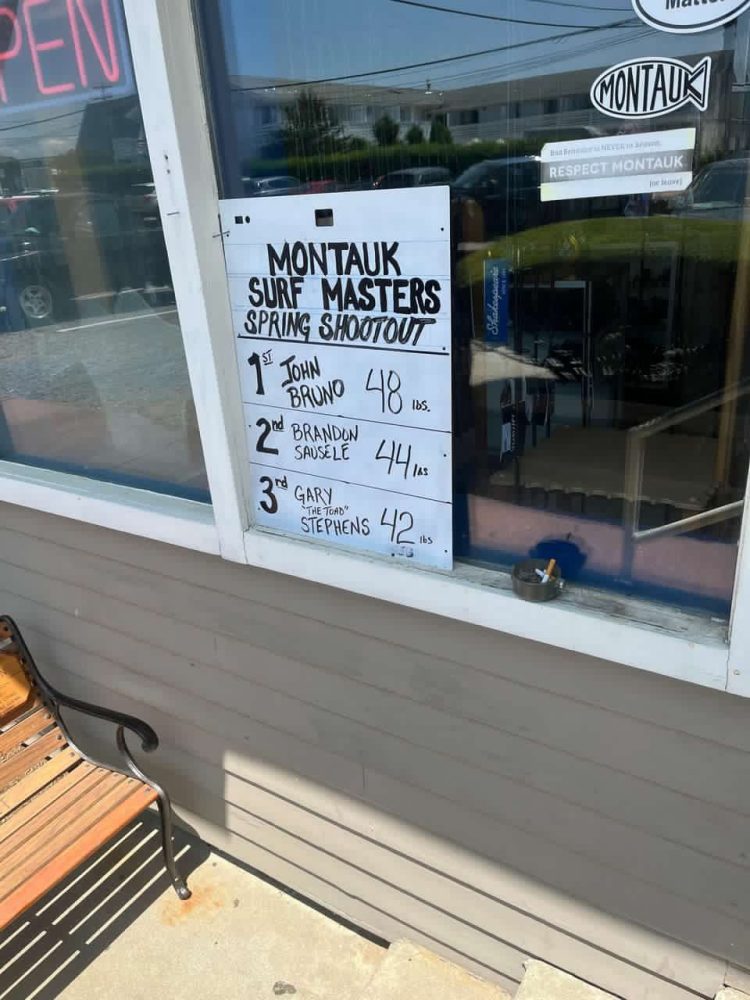 Brandon Sausele has been solidifying his status as one of Montauk’s best surfcasters for the past five years or so, taking the top spot in most of Montauk’s surf tourneys. He’s always got some top notch competition from the local sharpies, like Toad, who just picked a 42 pounder for third place, and John Bruno, who leads the Spring Shootout with a 48 pounder. Brandon currently sits at second place with a 44 pounder.
