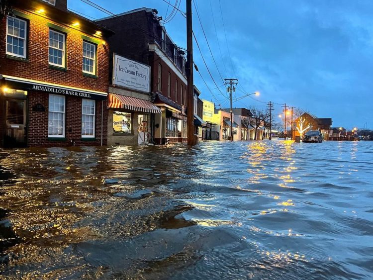 After the heavy wind and rain combined with the storm swell and high tides this past week, many waterfront areas were left damaged by flooding. Local angler and environmental photographer James Ronayne—who goes by the handle @fv_porkchop on Instagram—shared some photos of downtown Annapolis that he took while bobbing around the flooded streets in his kayak.