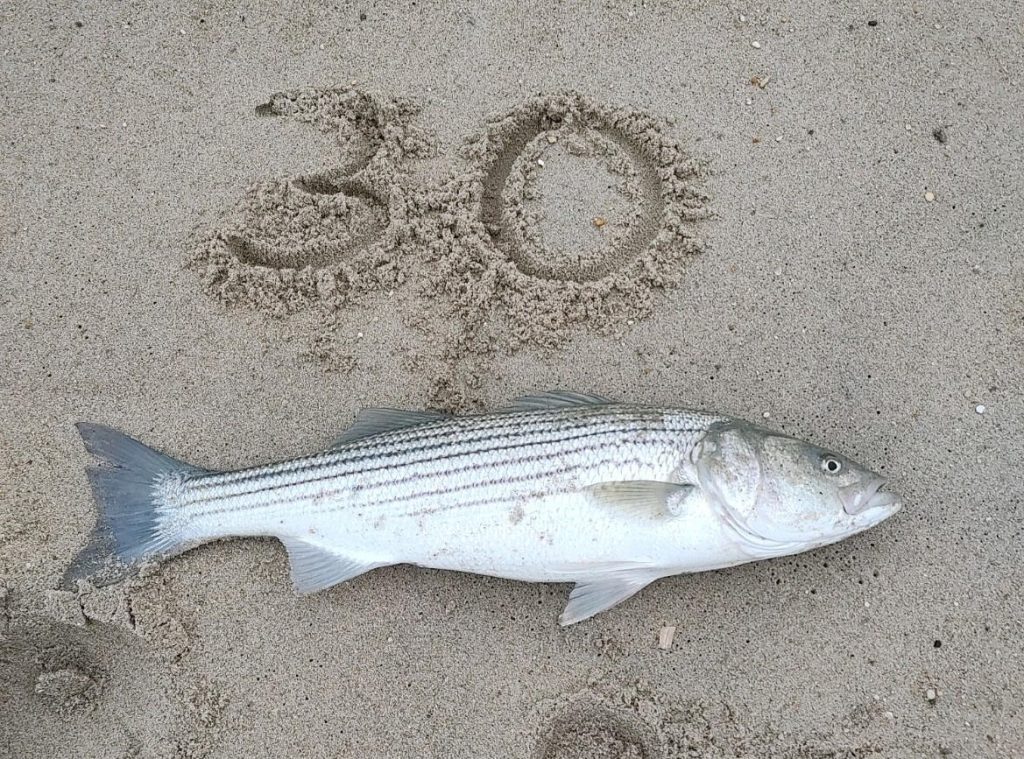 There are stripers to be caught in the bays, on the beach and in the rivers. You just may have to work a little harder for them. Bloodworms have been the most reliable bait, but shads and metal lips are accounting for some fish. Clams are the go-to bait on the beach.