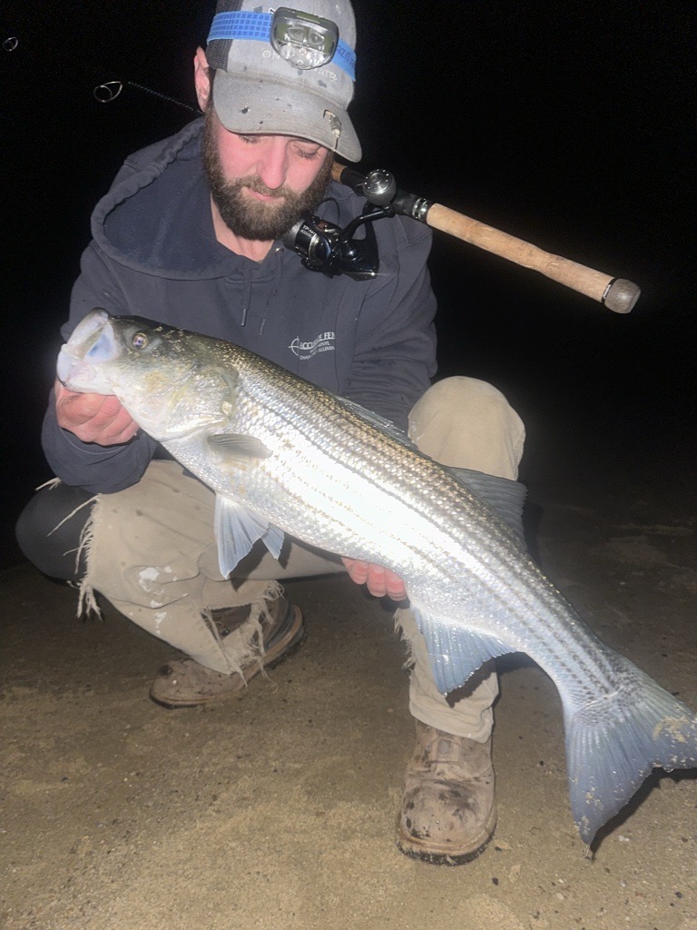 Based on my logs from the past 2 seasons, almost all of my early season striper trips in 2022 and 2023 found better fishing for stripers on the incoming tides in the estuaries. This year has been a colder spring in general, and after consecutive skunkings on the incoming tide in several spots, my luck turned when I began timing my outings toward the end of the ebb tide. Warmer water flowing out of the bays and salt ponds is what ignited activity from bass that were likely right there in front of me, but unwilling to feed during certain stages of the tide when cold water was coming in rather than warmer water moving out. The warm outgoing water brings silversides, grass shrimp, herring, crabs, and more recently, bunker, right through choke points and channels where bass are lying in wait for their food to pass overhead. The point in sharing this struggle is to demonstrate the value of keeping a fishing log and and how breaking our own patterns, even if they proved successful in years past, can lead to developing new ones.