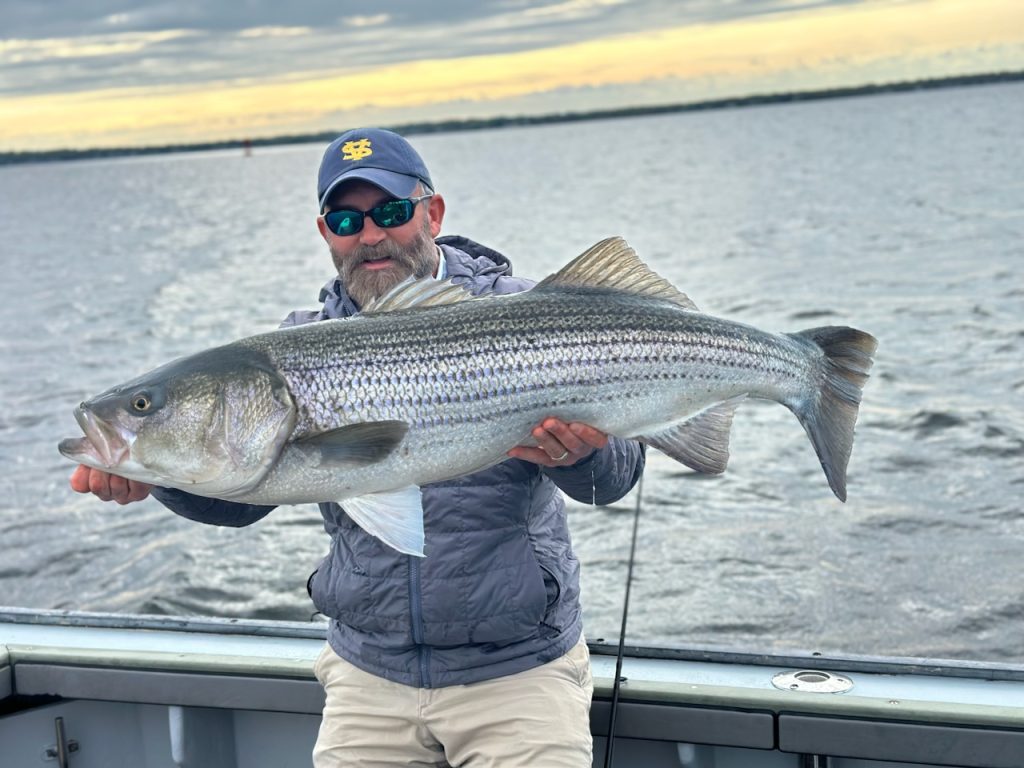 “Fishing throughout the state is in full bloom. Large striped bass are starting to be caught more regularly in addition to many schoolie and slot fish. Bluefish are a blast and have been cruising the shallows. Black Sea bass just opened in Rhode Island and the bite should improve quickly over the next couple of weeks. Tautog is still going really well, however the season closes at the end of the month, so get after it before it’s too late. Squid fishing has been hit or miss but those putting in the hours during the day and night are finding success. The scup bite hasn’t excatly been on fire but they’re around giving us all yet another solid bottom fishing option. Weakfish are being caught but not in great numbers yet. The state has been stocking trout regularly so there’s still time to chase the elusive golden trout while also catching nice rainbow trout. Largemouth fishing is currently going well, as water temps are relatively still cool. Depending on your fishery some fish are post spawn, some are spawning, and some are pre spawn. For those interested in getting on the water in July and beyond we still have some availability. Reach out asap to get your spot on the calendar today.”