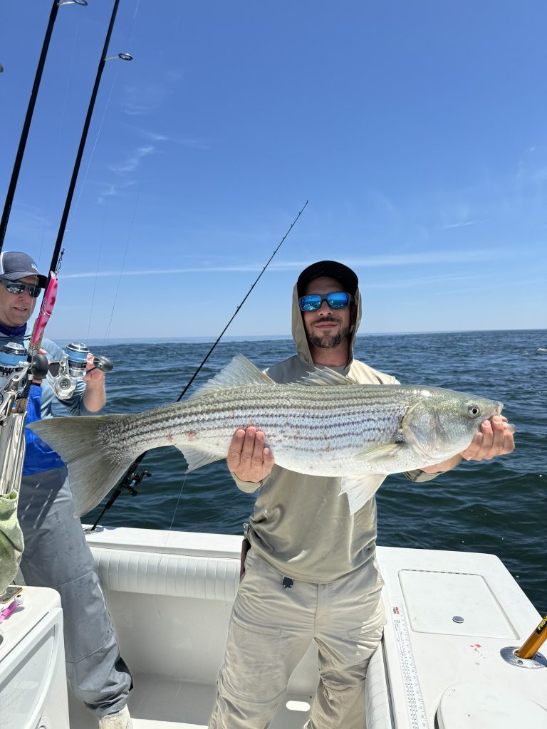 Captain Drew Downing of Down East Charters in Chatham said: “Fun fishing continues this week in the face of fog and relentless wind. Low temperatures on both tides have fish a bit sluggish for moments, but they roar to life when the bait comes through. Literally every edge we’ve checked from Chatham to Nantucket has had fish on it, so don’t be afraid to spread out and find your own water. Be especially aware with radar and watch duties as you pass in and out of rip edges where targets can be obscured. Slow and steady wins the race. Catch ’em up!”