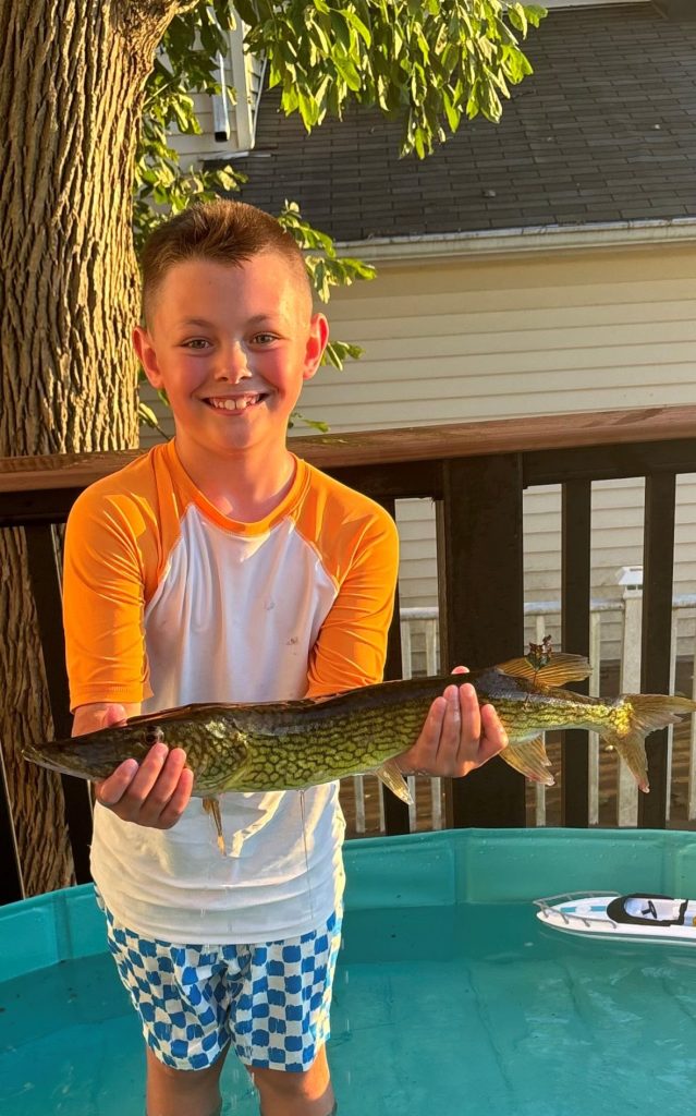 But other anglers, like Jude Avery Burke, are still plying the freshwater ponds for whatever bites. Despite the heat, Jude recently caught and released a hefty 25-inch chain pickerel in Lake Hopatcong.