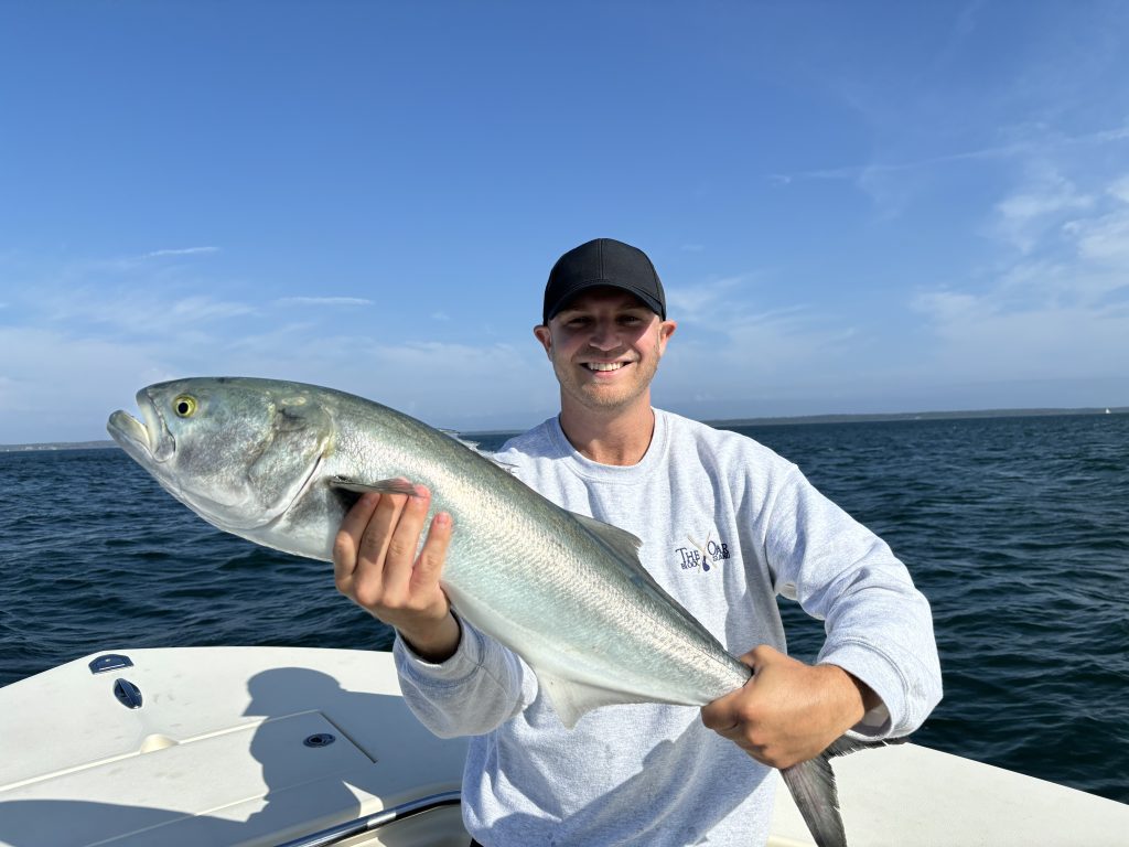 However, bonito have filled in nicely since their mid-summer arrival, and with so much bait around, albie season should follow a similar trajectory. Captain Kurt Freund of Fishsticks Charters on Martha’s Vineyard has been enjoying the abundance of bones on the south side of the Vineyard this week. Kurt reported: “The bonito fishing has continued and even improved since my last report. On Thursday morning, Nick, Colin and Jack DelGiudice caught 3, on Saturday morning, Vin and Matt Montanti and Perry Perillo combined to catch 9 bonito, and on Sunday morning, Maddie Scott and Matt Pray caught 3. All these bonito were caught south of the island, but I have had a few reports of bonito in the sounds.