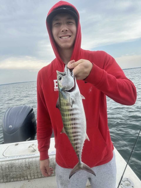 Big tautog in July, who does that? If you’ve been out on the Little Sister when Jason Colby has been targeting them then the answer is – we do! Bonito and blackfish are an unlikely combo for most but do together nicely in Captain Colby’s cooler. In preparation for the loosening of tautog regulations beginning August 1st Jason had been deploying his ample crab supply to see if ol’ whitechin was sniffing around some of his waypoints. Odds are that most would be content in July with any old crab-cruncher let alone 25” drag-pullers. While black sea bass are a beautiful, fun fish and a treat on the dinner table, they’re not likely to bedevil you and leave your leader in tatters. That cannot be said for tautog which probably are responsible for as many sleepless nights as anything which swims in these parts. In addition to limits of Buzzards Bay black sea bass and tautog, the Westport area is full of bonito with unprecedented action for them aboard the Little Sister.