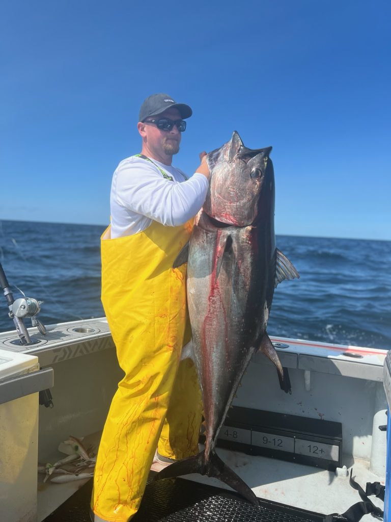 Captain Connor at Tall Tailz Charters provided the following report after another strong week on the water: “Fishing this week has been stellar. The big bass are chewing hard out front. Both live baits and trolling the tube have done well for us. We’ve also been doing well casting in the shallows for big bass as well as gator blues. We’ve had multiple fish over 40 pounds on light tackle this week, along with a nice push of 10-pound-plus bluefish. Bottom fishing has been great, with easy limits of scup and sea bass, mostly on jigs. The nearshore tuna bite is holding strong after poor weather earlier this week. We’re starting to see more and more over-size bluefin tuna on each trip. Both the jig and troll are catching well, while the Chatterlures side tracker in rainbow and calamari are producing best on the troll. Daiwa SK and SL jigs, along with the 10-inch RonZ are doing best for the jig.”