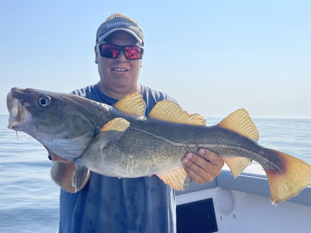 Alex MacMillian of FishLinked Charters in Wareham reported: “Things in Buzzards Bay are cooling off, but fall fishing seems to be heating up. To kick things off, some small tautog can be found already within Buzzards Bay. More sizable tautog are likely to move in soon. Get your green crabs ready and move from rock pile to rock pile. We have found structure around Cleveland’s Light to reliably hold some tog. The striper bite has been relentless in Buzzards Bay. Chasing them into harbors has worked well for us. Although you will see many people casting into feeds, we are dredging them up on eels on spreaders, the same way we started this season. Another species to look out for in some harbors are the yellow-eyed demons! Bluefish have returned. A mix of snapper blues and gator blues can be found poking around. White Al Gags Whip-it Fish are doing the trick—just pack a few extra tails because they’ll shred them with ease. If you are chasing bonito and albies, a quick ride through Woods Hole should reveal all-day feeds. With some patience and small enough epoxies you should be able to hook a few hardtails.”