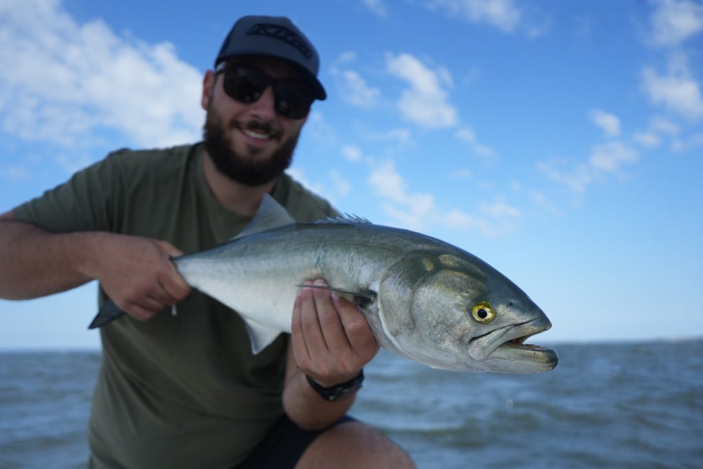 Typically, the Doc and large pencil poppers crush blues, however, it seems as though the fish wanted smaller, more subtle plugs. The top performer seemed to be a white Yo-Zuri Inshore Pencil in bone white as well as the Joe Baggs Swarter.