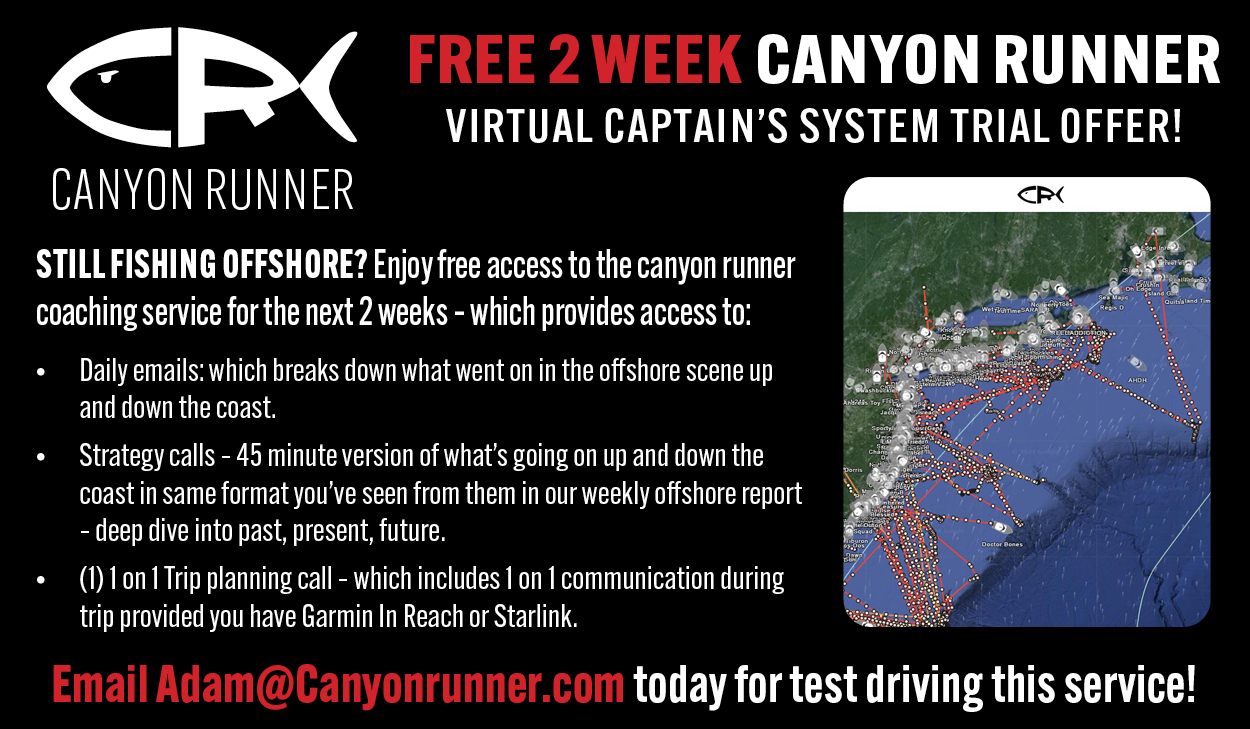 The Canyon Runner Sportfishing team offers coaching, concierge services, seminars and a Virtual Captain System which will exponentially help increase your catches inshore, mid-shore and canyons. Their Virtual Captain System provides all the fish-catching and safety intel including a built-in warning system that gives you the ability to track over 400 Member boats & 15 Pro-Staff boats in real time! How’s that for a network of buddy boats? Learn more.